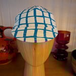 Classic 4 panel one off cycling cap handcrafted from 100% cotton off white and blue cloth.